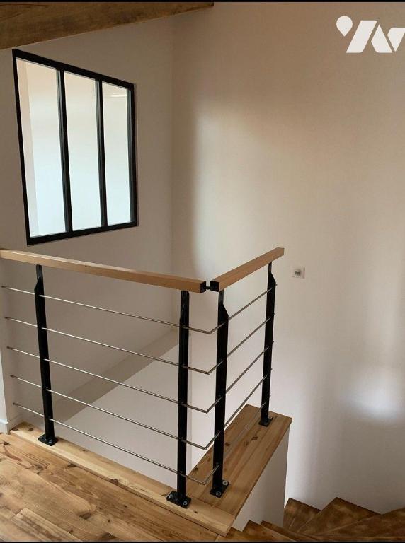 Charmante maison de bourg rénovée, comprenant une grande pièce de vie avec cuisine équipée, buanderie et toilettes.
